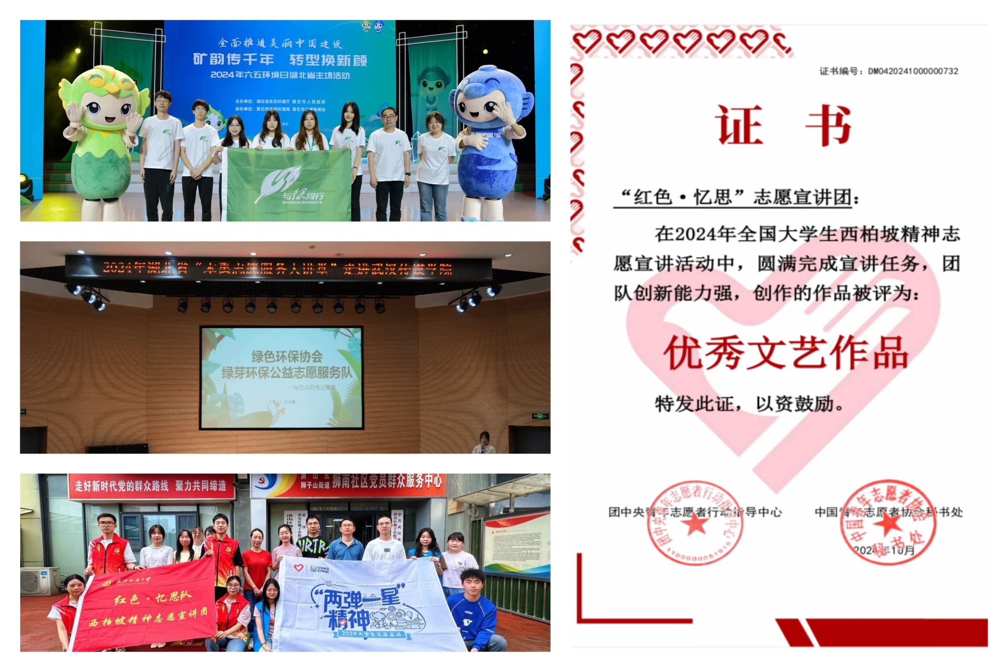 10. 思政工作见效出彩。学院入选全国生态环境志愿服务网络首批成员单位;培育出全国大学生自强之星1人(全校3人)、湖北省向上向善好青年1人(全校1人)、湖北省青年环境友好使者2人、校榜样人物1人、五四青年奖章团队1个,青年文明号1个;“绿芽”创新实践团获团中央立项3项,全国宣讲队2项,省级重点立项1项;研究生实践队荣获全国优秀文艺作品1项。