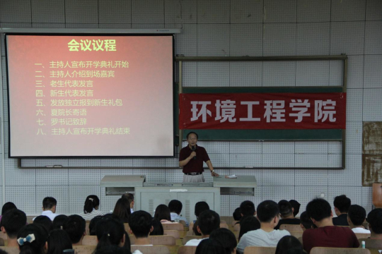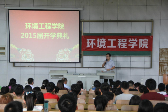 9月13日下午,环境工程学院2015级新生开学典礼在7栋T102隆重举行。环境学院院长夏东升、分党委书记罗汉春等领导、部分专业教师和全体辅导员出席了本次开学典礼。244名15级新生全部参加,大会由分党委副书记张莎莎主持。