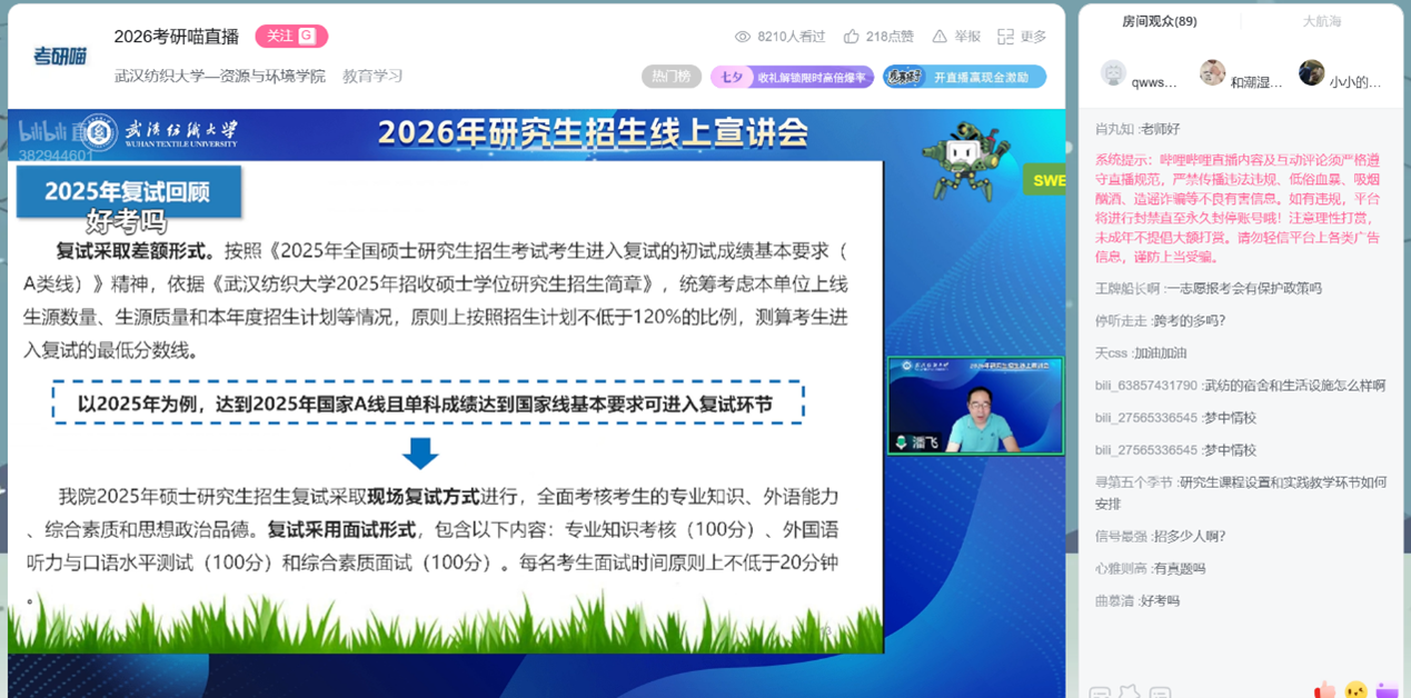 学院备考学生积极上线观看直播,希望能在直播间与主讲人互动。对学院多元化的招生专业,培养体系十分感兴趣,也被学院丰富的学生活动和奖助学金所吸引。“看到潘院长亲切的面孔和学院近年来在研究生培养上做的努力,我感到十分幸福,更有信心备考了!”,学院备考学生小梅说到。