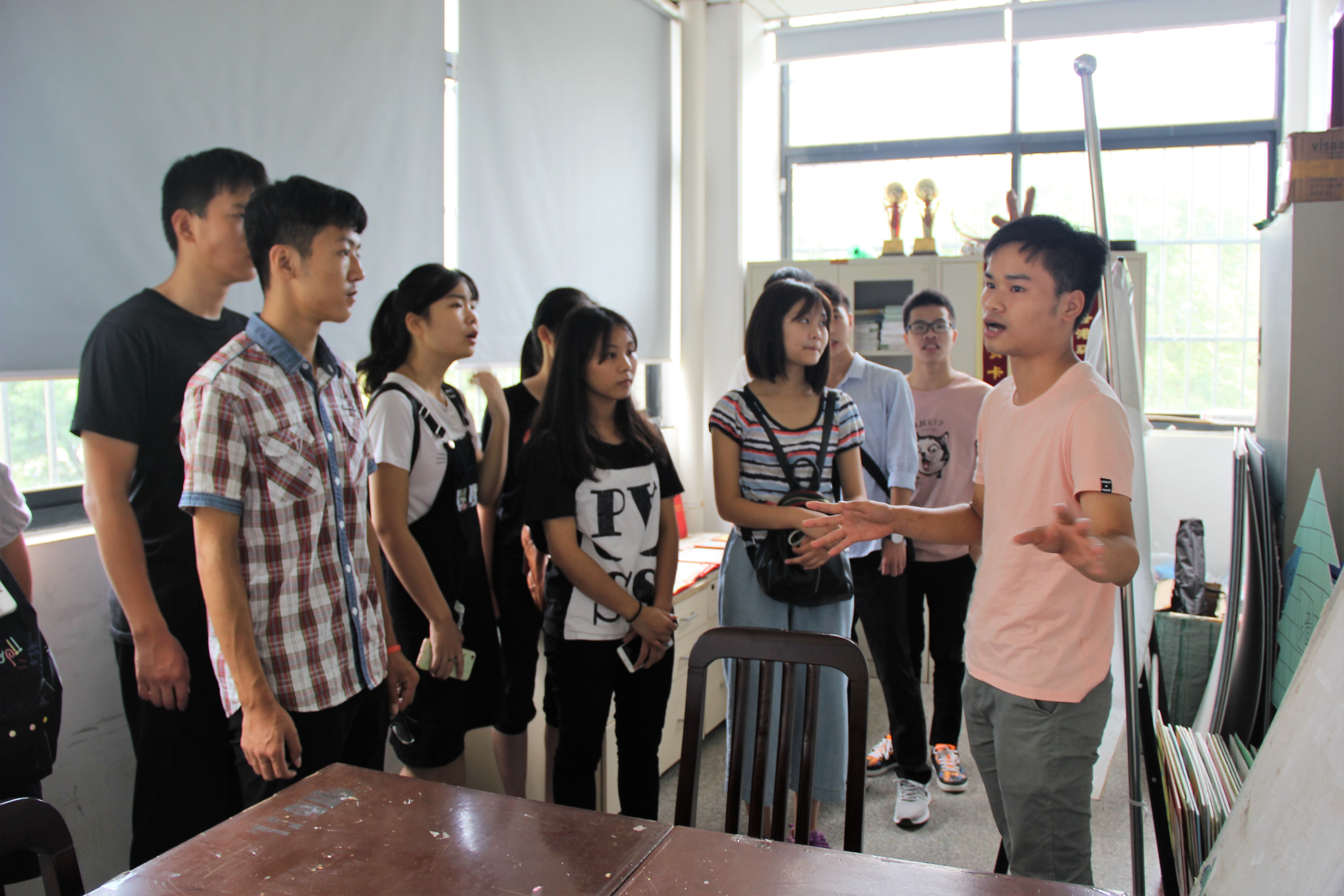 (谢书记带着学生了解绿色环保协会)