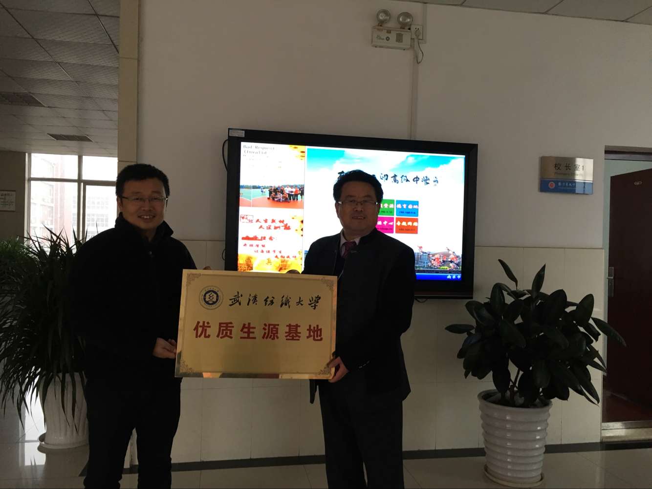 11月23日,环境学院赴南京天印高级中学建立优质生源基地。南京天印高级中学是江苏省重点高中,省级教科研先进单位,在人才培养方面富有特色。周飞虎校长热情的接待了学院一行人,对我校把南京天印中学作为优质生源基地表示欢迎,并介绍了该中学人才培养的特色和亮点。夏院长介绍了太阳集团网tyc9728的发展历程、办学特色,学院的专业特色。他说,此次赴南京建立优质生源基地就是主动打开门办学,提升学校在全国的知名度和美誉度,希望南京天印中学多为学校提供优质生源,欢迎有志青年报考我校。双方还共同签订了“优质生源基地建设协议”,并为该校授牌。