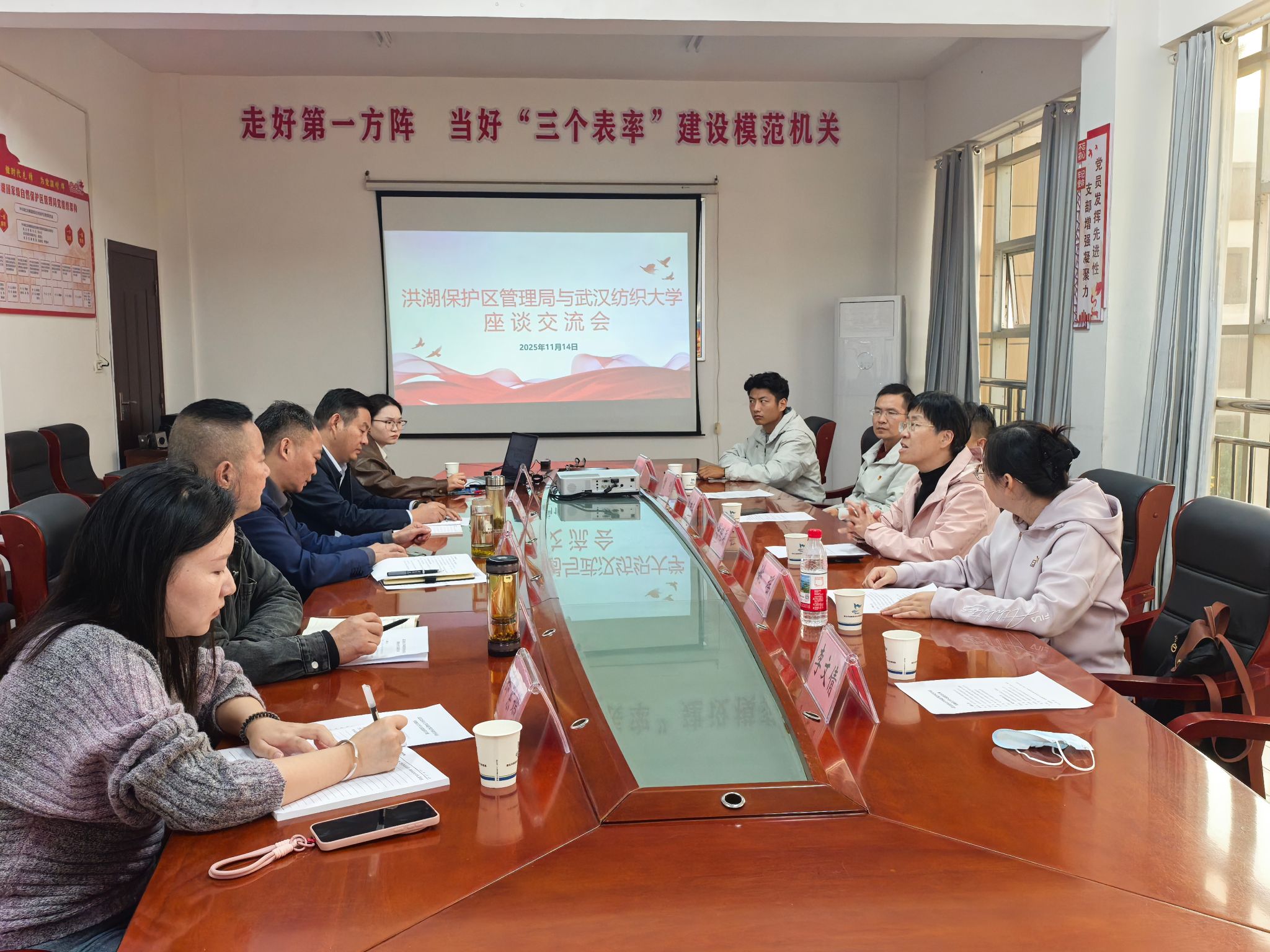 在交流环节中,双方围绕洪湖生态环境治理面临的技术难题、未来合作的切入点与模式等议题进行了深入探讨。李进平教授、曹刚老师分别与管理局领导就水质净化、生态修复技术、湿地保护与管理等具体问题交换了意见,并在加强科研协作、共建实践教学基地、联合开展技术攻关等方面达成了初步共识。