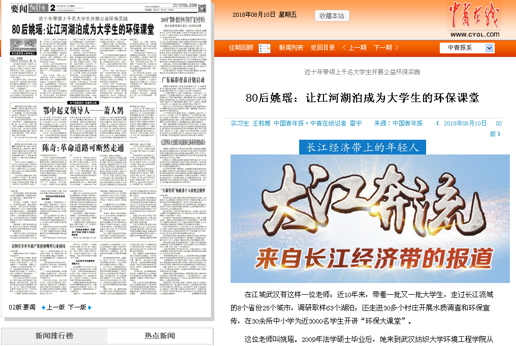 “走访调查让我们了解到长江流域最真实的生态数据。”自小在江城长大的张燚说,此前自己一看到环保事件,总是归咎于政府和企业,但在“绿协”两年的经历让她认识到,环保是一个系统性工程,涉及经济发展、社会就业、环保技术进步以及公民环保意识的提高等多方面,“每个人都要行动起来”。