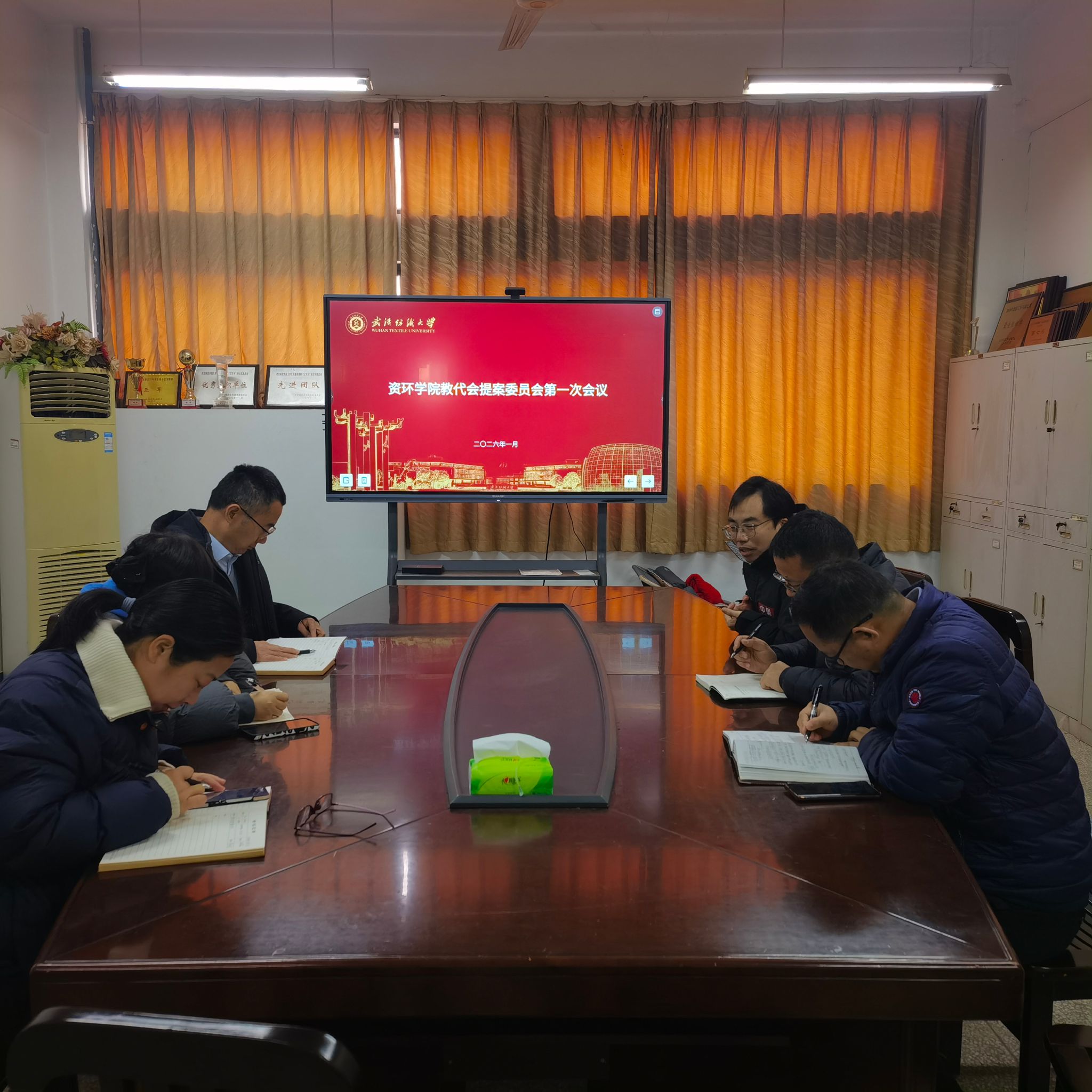 2026年1月5日,资环学院在学院会议室正式召开提案工作会议。学院党委书记郭俊、工会主席孙磊出席会议,教师代表钟振兴、李强参加讨论。学院党委副书记姚瑶、副院长蔡亚君列席会议。
