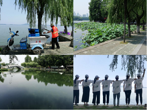 南湖民族大道段巡湖测水,参与蓝藻打捞活动
