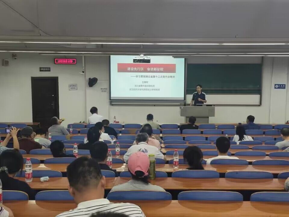9月8日下午,环境学院、机械学院在03-T102举办湖北省第十二次党代会精神宣讲会。湖北省青年宣讲团成员、马克思主义学院王海燕教授进行现场宣讲,环境学院和机械学院全体党员教职工参加,宣讲会由机械学院党委书记干文勋主持。