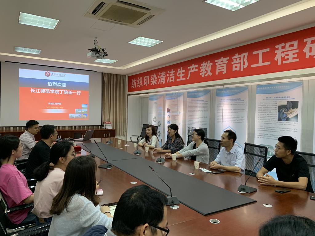 6月18日上午,长江师范学院绿色智慧环境学院丁世敏院长带队一行4人到环境工程学院考察交流,双方就推进开展研究生联合培养、学科建设、硕士点建设和研究生教育工作进行了广泛深入的交流。学院院长夏东升,党委书记谢晓萍、副院长李进平、潘飞及部分青年教师和研究生代表参加了坐谈会。
