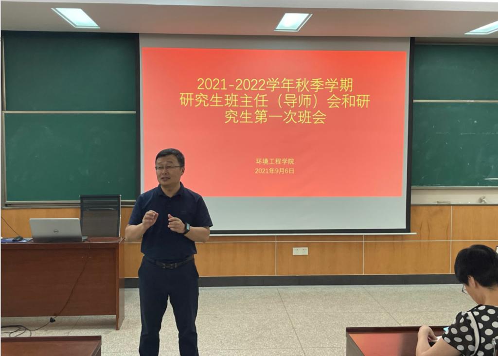 2021年9月6日下午,我院在环境工程学院工程中心会议室召开了2021-2022学年秋季学期研究生班主任(导师)会,学院院长夏东升、学院书记谢晓萍、学院研究生导师、研究生班主任及研究生参加会议,会上夏东升院长明确了本学期研究生班主任和导师工作职责任务理顺学院研究生学生工作相关流程,指导班主任和导师严格落实学校和学院相关工作要求,谢晓萍书记通报学校各项防疫政策,规范和加强班主任和导师作风建设,牢固树立“学生之事无小事”的底线思维和红线意识,全力保障学生工作的顺利开展。会议中,导师和学生畅所欲言,对建立符合本学院情况的研究生班主任和导师教育管理模式,切实发挥班主任和导师的育人作用,广泛开展宣传引导,营造浓厚的育人氛围提供了积极有意义的建议。