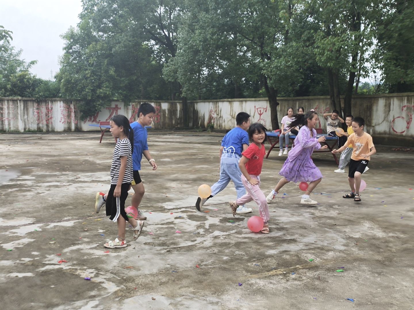 听说要开运动会,7月17日,孩子们比以往来的更早。