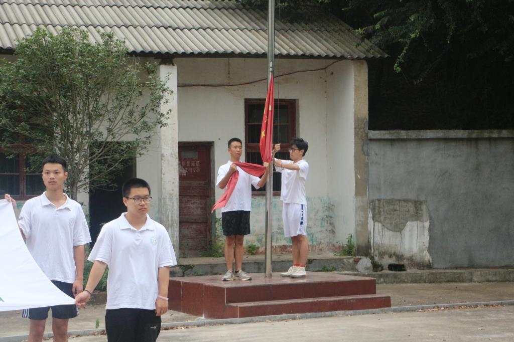 当看到一群陌生大哥哥、大姐姐时,孩子们叽叽喳喳声戛然而止,显得手足无措、十分害羞。我们主动上去“搭讪”,在作了自我介绍后,和孩子们做了一些小游戏,不一会功夫,他们放开了很多,清澈和纯真的笑容我很久没有见到过,瞬间困意全无。不知不觉时间来到8点,太阳已高高挂起,我们在操场举行了简单的开营仪式,由于我在学校就是国旗护卫队成员,护旗的任务,当仁不让的交给了我。