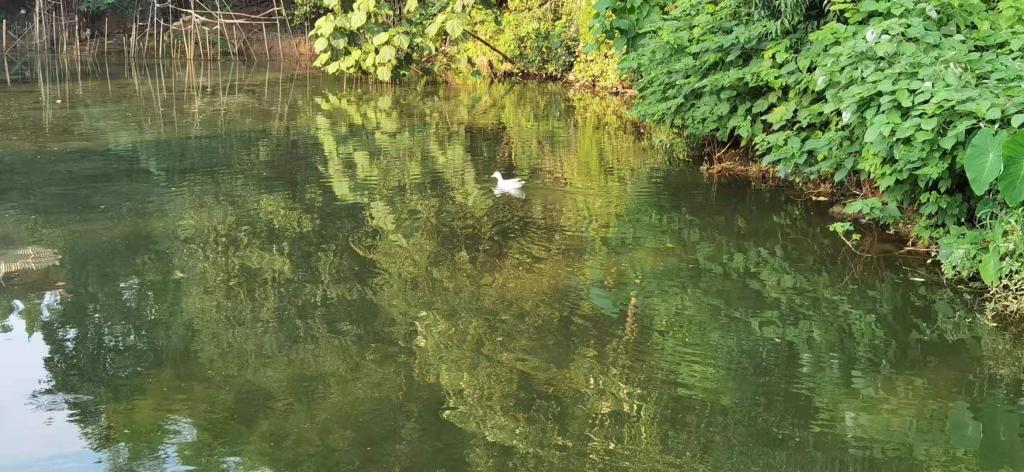 一路池塘交错,绿油油的水稻布满田间,微风轻拂过竹林,发出沙沙的响声。孩子们走的很轻快,但由于羞涩而不愿与我多讲话。于是我主动与他们交流,渐渐地打开了心扉,与我分享了很多上学的趣事。