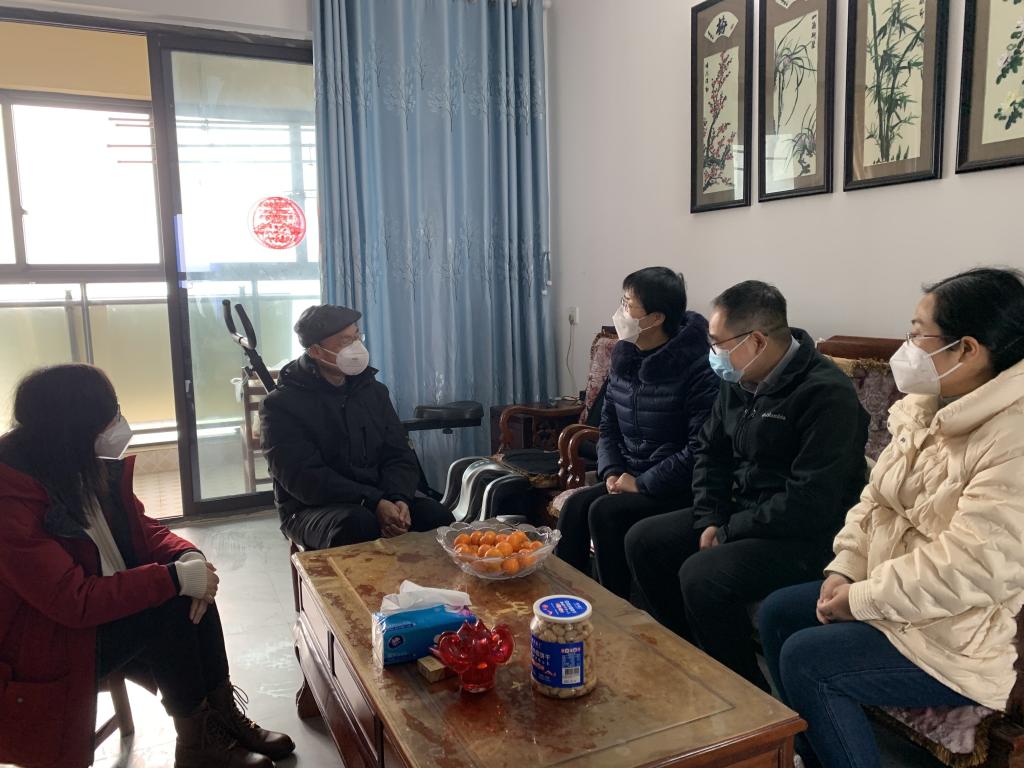 1月12日,春寒料峭,学院领导党委书记谢晓萍、院长潘飞、副院长蔡亚君和副书记姚瑶一行在春节前夕看望慰问退休教师,向他们致以节日的祝福,嘱咐他们保重身体,多回学校和学院看看。