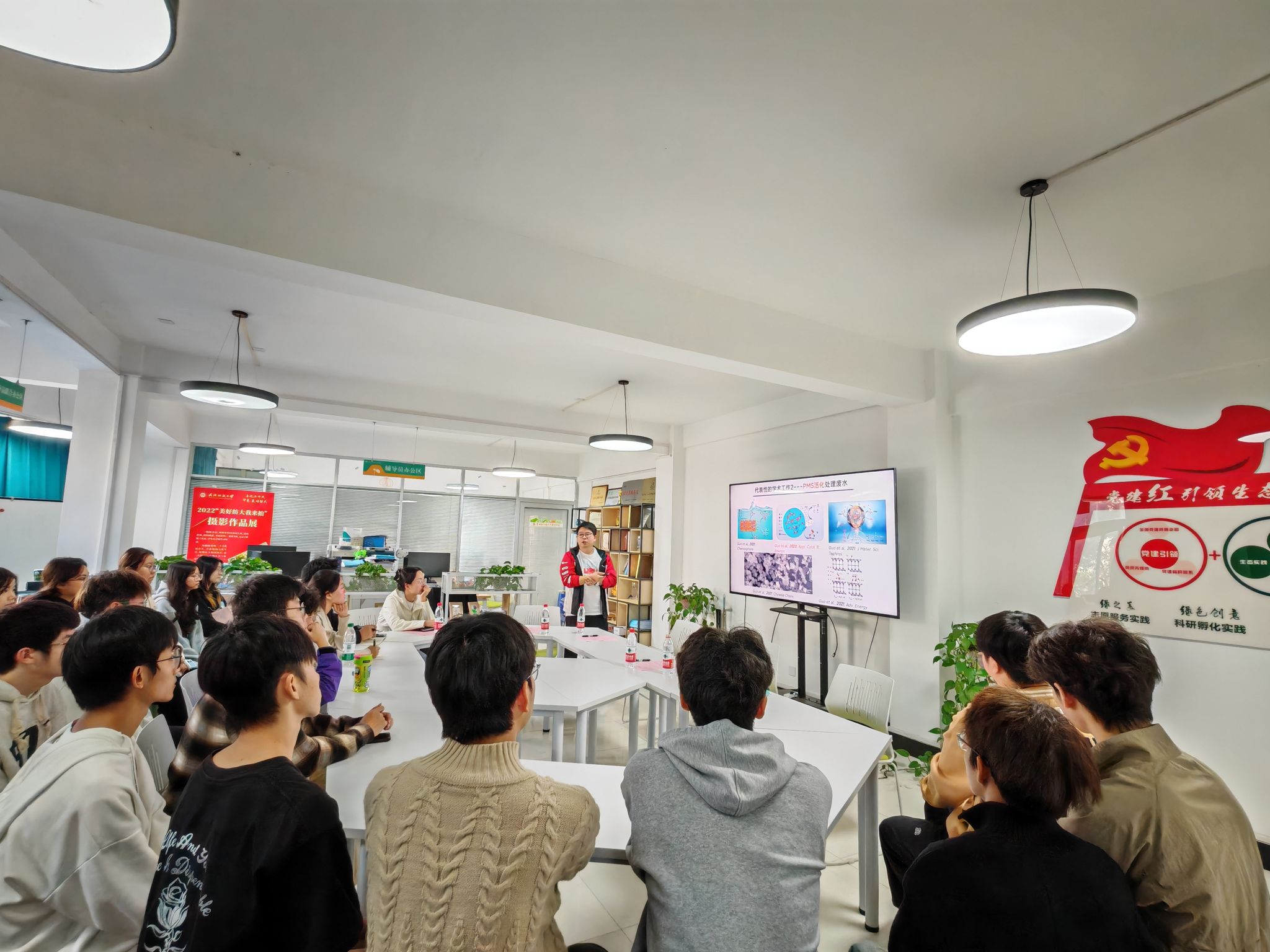 为深入学习贯彻党的二十大精神,大力弘扬科学家精神、涵养优良学风,营造良好的一站式育人文化氛围,10月24日下午,资环学院邀请2024年度“全球前2%顶尖科学家榜单”入选者、省部共建纺织新材料与先进加工技术国家重点实验室特聘教授,给排水科学与工程系郭盛老师来到十栋“绿芽”创新实践学生服务驿站开展“资环专业未来发展畅享”专题交流活动。学校学工部部长张莎莎、学院党委副书记、辅导员及各年级学生代表参加讲座。