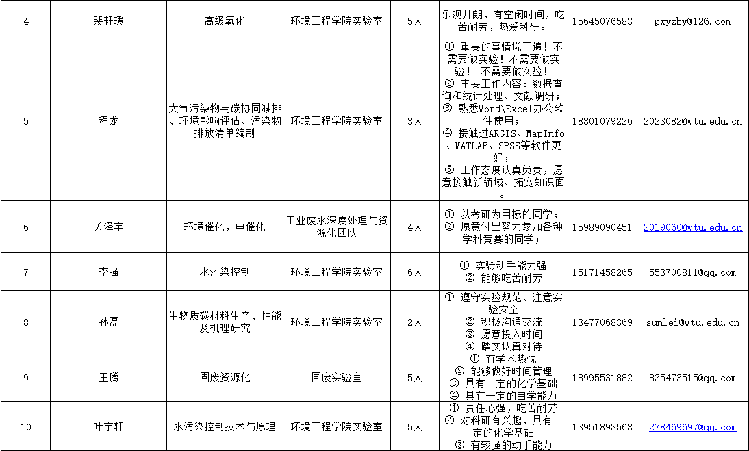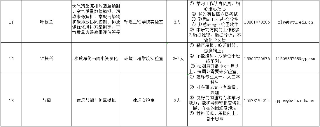 学院经过前期招募意愿征集,15名老师共需招募69名学生助手(详情见下表),欢迎有致力于从事科学研究的同学,根据表中要求、联系方式咨询对应老师(排名不分先后),由老师根据报名情况择优选拨。