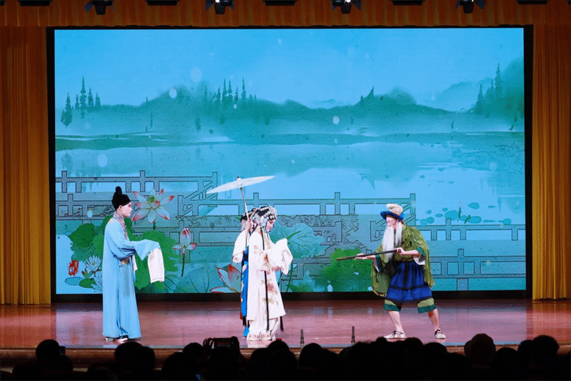 武汉华夏理工学院青春领航环保志愿宣教团利用戏曲传播环保理念。