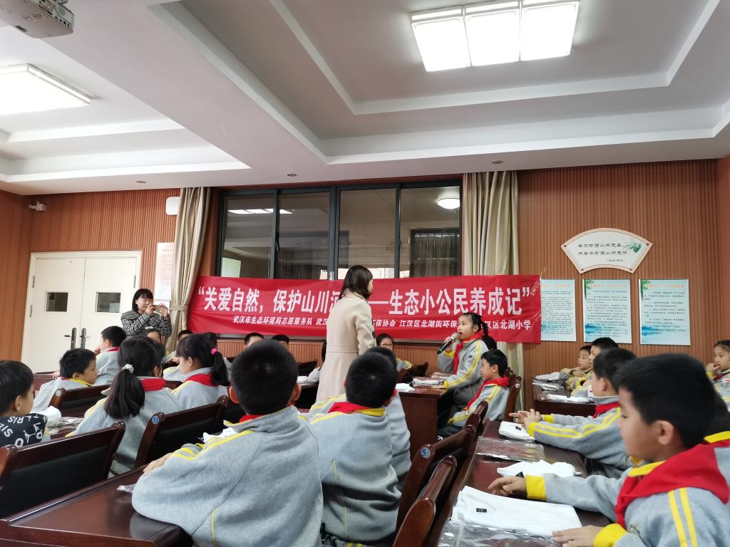 据悉,本次活动是武汉市生态环境局举办的“关爱自然,保护山川河流——生态文明一路同行”系列公益活动之一。当天,来自武汉生态环境局志愿服务队、太阳集团网tyc9728绿色环保协会的志愿者们走进北湖小学,通过多种形式的课堂活动,给孩子们讲解生态环保知识、传递生态环保理念。