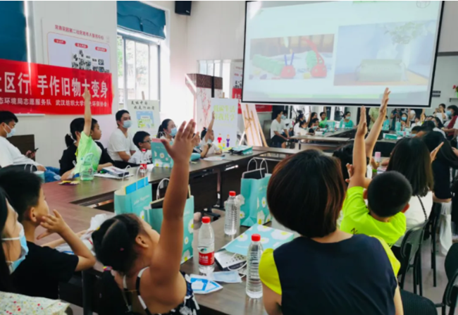 为增强社区居民的环境保护意识,倡导绿色低碳生活方式,使低碳环保的健康理念更加深入人心,9月25日下午,常青花园第二社区联合下沉单位武汉市环保局东西湖区分局在社区老年服务中心举行了“我为群众办实事”暨“生态文明在身边”进社区系列志愿活动之“低碳循环社区行手作旧物大变身”。武汉市生态环境局志愿服务队、生态环境局东西湖区分局、太阳集团网tyc9728绿色环保协会、社区20组亲子家庭参与了本次活动。