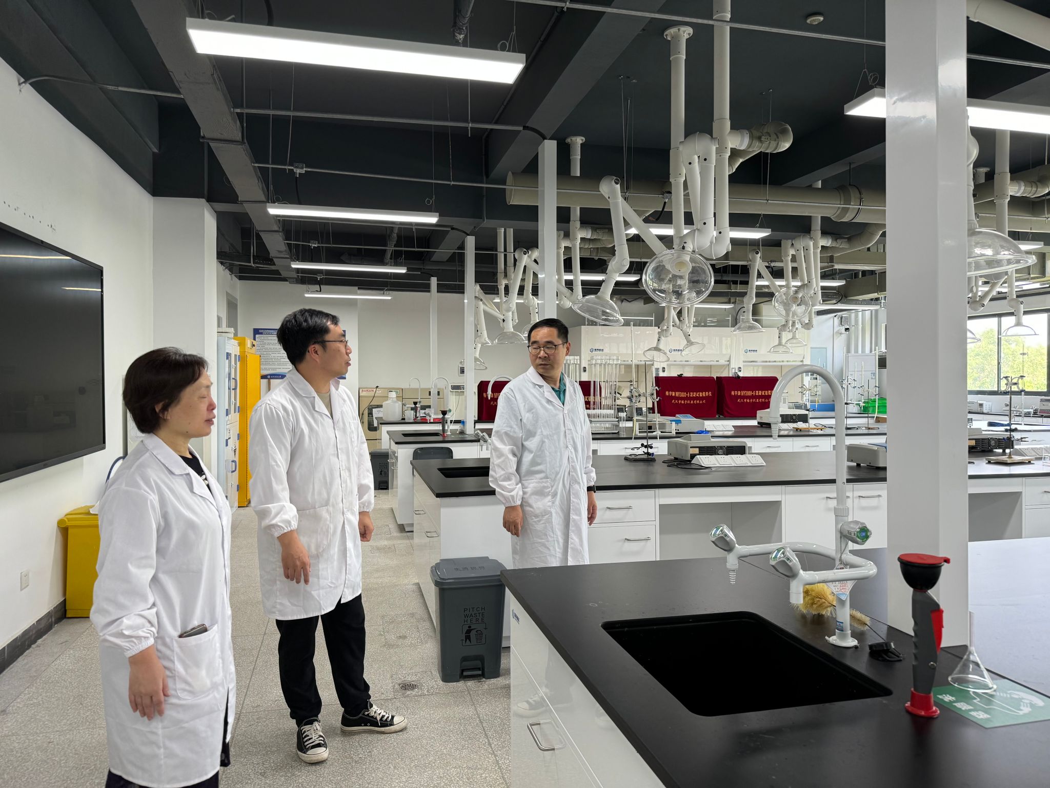检查团队对化学实验室内的危险化学品进行了全面排查,包括存储条件、使用记录和处置程序。严格执行了相关安全规定,确保了化学品的安全存储和使用。同时,对实验室的通风系统、消防设施和紧急疏散通道进行了细致的检查,以防止任何潜在的安全风险。