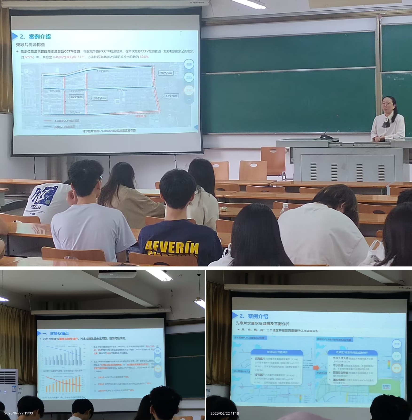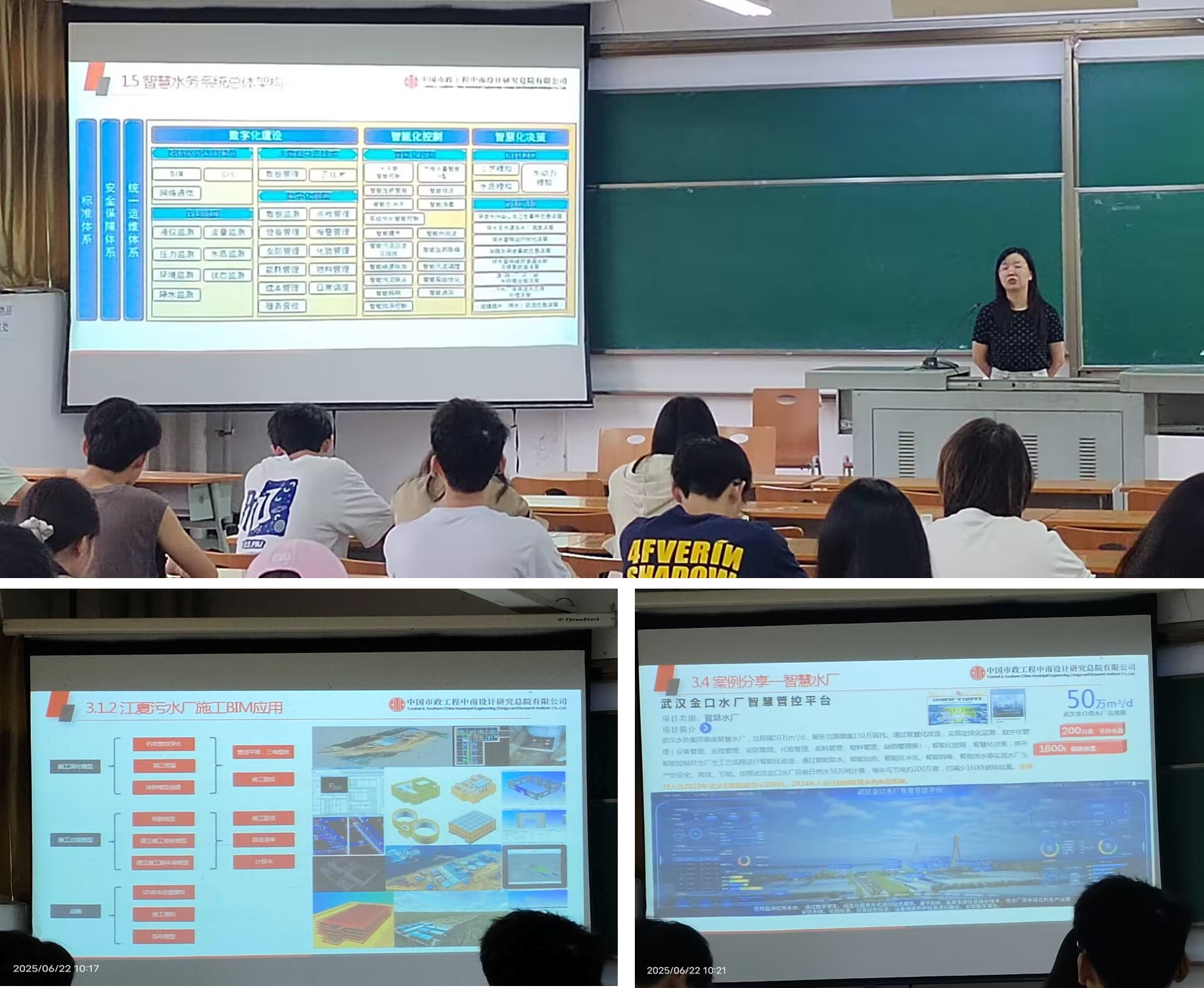 6月22日上午,太阳成tyc9728集团给排水科学与工程专业邀请两位企业导师来校交流。作为资源环境学院暑期实习实践活动的一部分,来自中国市政工程中南设计研究总院有限公司的高兰博士为给排水专业的学生做了《数字化创新与智慧水务应用实践》的讲座,来自武汉市政设计院有限公司的熊雪君博士做了《南方滨水平原城市污水管网系统诊断案例及思考》的讲座。