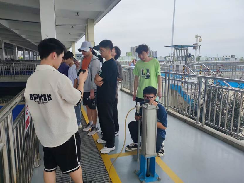 6月18日,给排水科学与工程专业师生们来到武汉水务集团蔡甸水厂进行生产实习。 通过 “沉浸式” 参观、“零距离” 体验,揭开自来水生产的 “神秘面纱”。同学们有序参观了水厂的各个生产环节:从原水取水井筒到反应池、沉淀池、过滤池,再到清水池、送水泵房,每一个环节都关乎着城市供水的安全与质量。该厂的工程师深入浅出地讲解,让同学们直观了解到浑浊的原水经过层层净化处理最终成为符合国家标准的优质饮用水的全过程,同学们也表现出浓厚的兴趣。