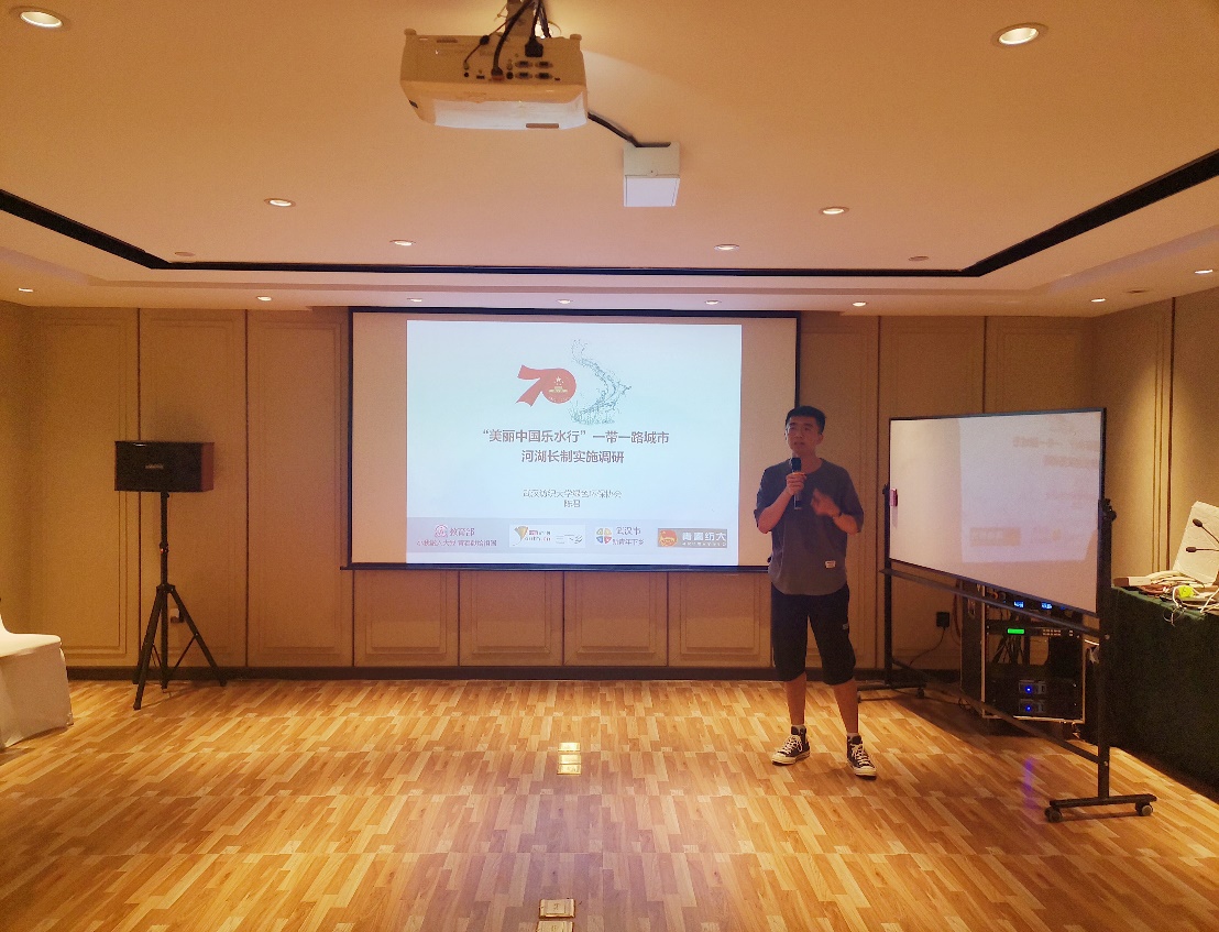 会上,绿协成员陈君分享了协会2019年获得教育部“小我融入大我 青春献给祖国”优秀成果“美丽中国乐水行”一带一路城市河湖长制调研项目,为大家介绍了调研的环节、活动内容和取得的成果,并与学员进行研讨交流培训结束后,学员们一起在秦淮河七桥瓮湿地公园取水样进行水环境实验。