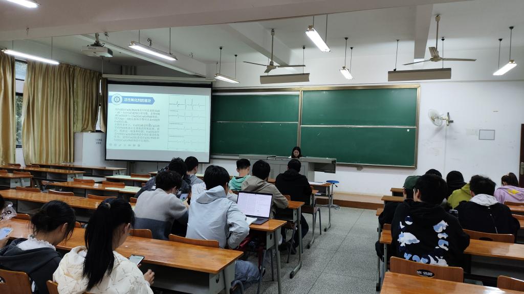余晓嫚同学结合课题组前期研究,概述了修饰表面配位球调节光催化CO2还原动力学;通过太阳能驱动的二氧化碳减排为增值产品,缓解温室效应和解决相关绿色能源危机的可持续战略。