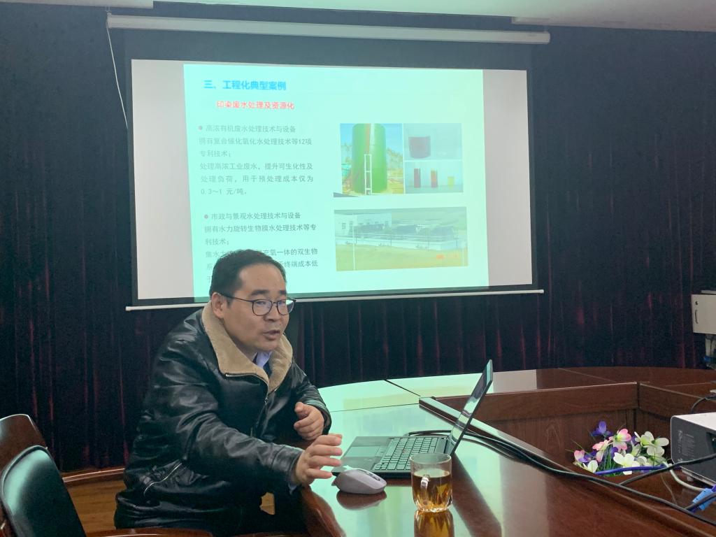 在哈工大环境学院博士生导师张军、国家重点实验室办公室副主任吴洁、国家工程研究中心办公室主任郑成志的带领下,潘飞一行参观了该校的城市水资源与水环境国家重点实验室、城市水资源开发利用(北方)国家工程研究中心等科研平台,并作了题为《印染废水深度处理》的学术报告,简要介绍了我校纺织印染清洁生产教育部工程研究中心的研究领域、人才队伍、产出成果等情况。