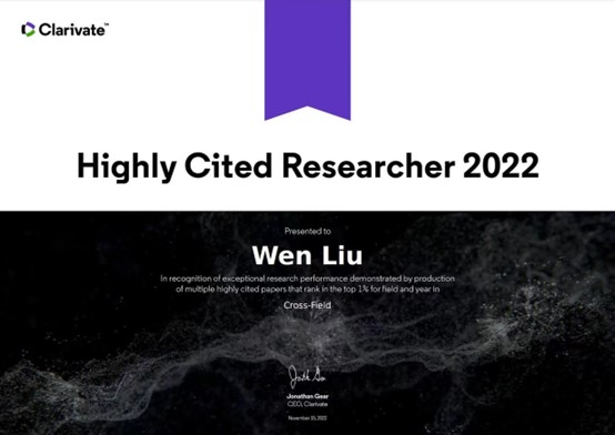 2022年11月15日,科睿唯安(Clarivate)正式发布全球“高被引科学家”(Highly-Cited Researchers 2022)榜单,来自69个国家和地区的6938名科学家入选。学院“阳光讲席教授”刘文研究员入选交叉学科“全球高被引科学家”,彰显了学院在环境学科建设上及学科竞争力方面的优势。
