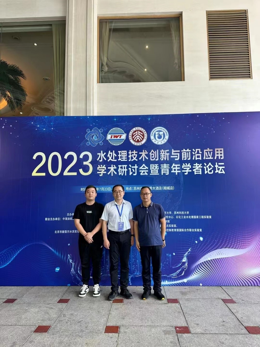 7月23日至25日,2023水处理技术创新与前沿应用学术研讨会暨青年学者论坛在苏州举办。本次会议由北京大学和苏州科技大学主办,围绕水处理与应用领域的热点问题开展研讨。我院潘飞教授、李强副教授和叶宇轩博士受邀参加了该会议,认真聆听了来自北京大学、南京大学、哈尔滨工业大学、四川大学等多所高校专家的主旨报告,并与行业内的知名专家学者进行了深入的学术交流。