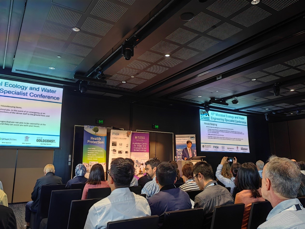 2023年9月10日至14日,我院青年教师裴轩瑗应邀前往澳大利亚布里斯班参加了“第十届IWA微生物生态学和水工程专家会议”,并在会上进行了海报展示。此次出访是一次具有重要意义的学术交流活动。会议由昆士兰大学和国际水协组织(IWA)共同主办,吸引了来自世界各地的水处理和微生物生态学领域的专家学者,涵盖了多个领域,包括废水处理、水资源管理、水质监测等。这为我院教师提供了与不同领域专家交流的机会,拓宽了学术视野。会议报告涵盖了众多前沿研究领域,如新型微生物生态学方法、水处理领域的新技术和可持续发展方向等。与会者积极参与会议报告后的讨论,分享他们的学术成果和见解。这种互动促进了不同研究团队之间的合作和知识交流。