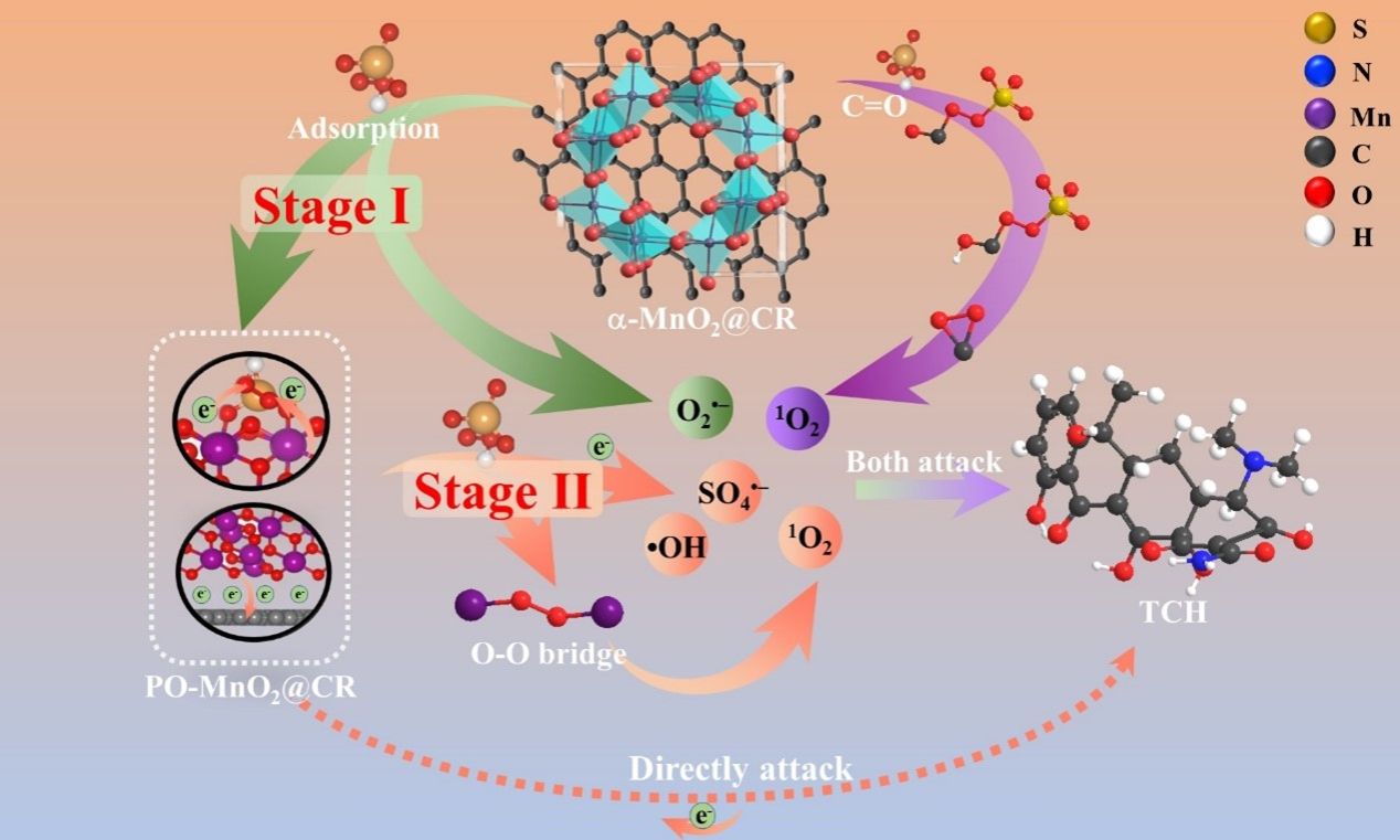 环境工程学院潘飞教授及其团队为推动绿色发展,响应国家生态文明建设需求,长期致力于纤维基功能纳米材料制备及其在环境领域应用的基础研究。团队构建了具有结构化活性位点的锰碳基复合催化剂/PMS体系,以实现有机物的有效转化,阐明活性位点与活性物种之间的关系;通过开发具有结构化活性位点(C = O)的锰碳复合材料来激活PMS降解四环素(TCH),研究了C = O-锰与活性物种生成之间的相关性;结合密度泛函理论(DFT)计算揭示了C=O-Mn催化剂中不同活性位点的结构-功能关系;阐明了活性自由基在TCH快速降解中的作用,为基于Mn-碳复合材料/PMS体系的催化剂的反应机理和合理设计提供了新的思路。研究成果以“Revisiting the multipath elimination of contaminants by carbonyl-containing manganese-carbon composites in the peroxymonosulfate system: A new way of constructing C-Mn-PMS complexes to distinguish the stages of active species production”为题,发表于环境领域TOP学术期刊Chemical Engineering Journal (中科院1区,2022年IF=15.1,论文链接:https://doi.org/10.1016/j.cej.2023.144685)。我校为第一署名单位,论文第一作者为研究生周火,通讯作者为潘飞教授。