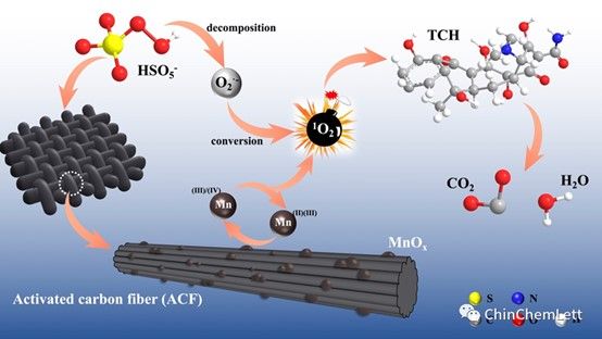在此基础上,团队尝试以活性炭纤维(activated carbon fiber, ACF)为载体,在低温煅烧下将部分MnO2转化为多价的Mn3O4,合成了一种新的多价催化剂。具有高导电性和缓冲基质的ACF不仅可以调节MnOx的组成,还可以克服MnOx因其化学和热稳定性差而导致的团聚现象。此外,ACF自身结构和表面化学的多功能性可以将有机污染物吸附到自身表面,缩短有机污染物与活性物种之间的距离,从而提高催化剂的催化效率。研究成果以“Activated carbon fiber mediated efficient activation of peroxymonosulfate system: modulation of manganese oxides and cycling of Mn species”为题,发表于知名学术期刊Chinese Chemical Letters (中科院1区,2022年IF=9.1,论文链接:https://doi.org/10.1016/j.cclet.2023.108407)。我校为唯一署名单位,论文第一作者为研究生肖俪曦,通讯作者为潘飞教授。