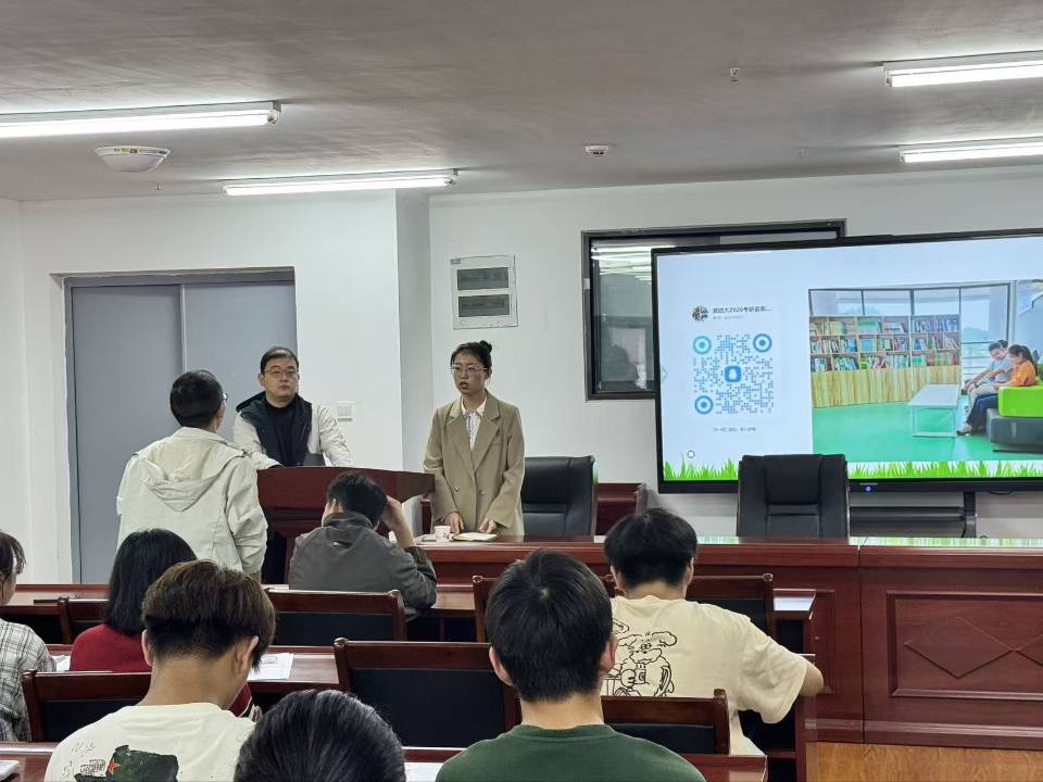 为吸引优质生源,优化生源结构,10月16日上午,我院研究生导师代表叶宇轩,研究生秘书邓雨薇赴湖北师范大学城市与环境学院开展2026年研究生招生专场宣讲。