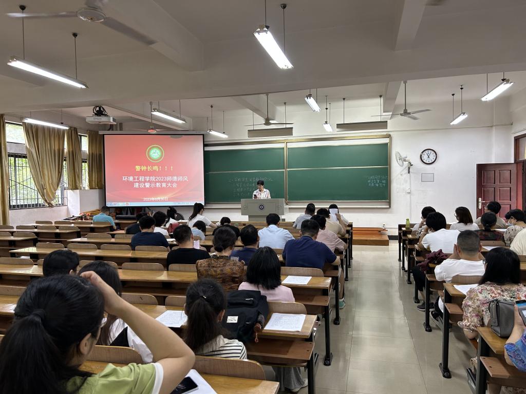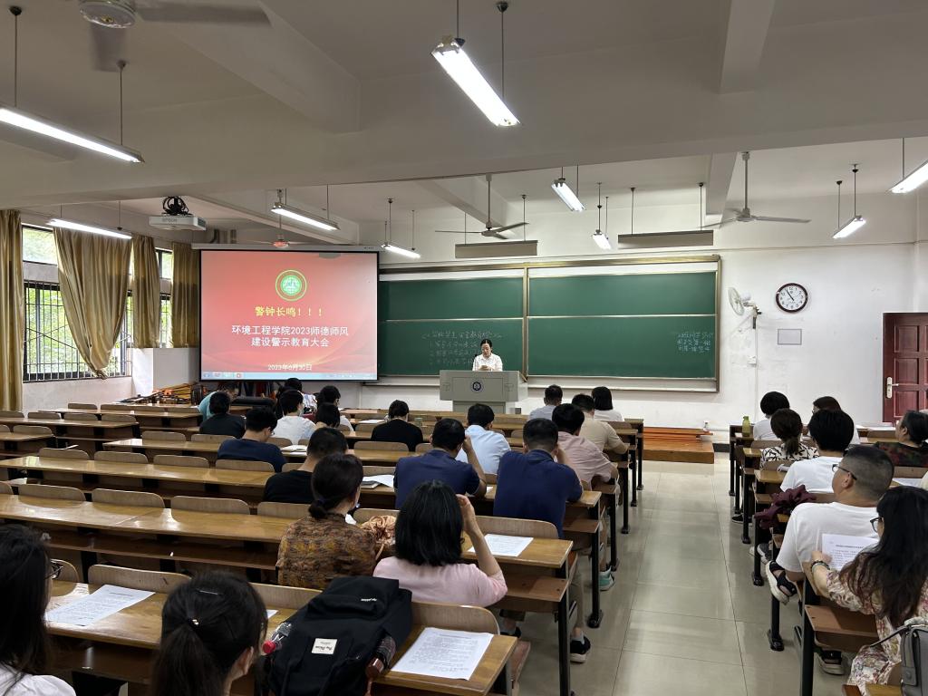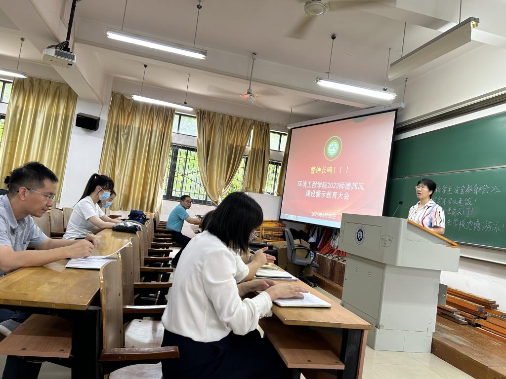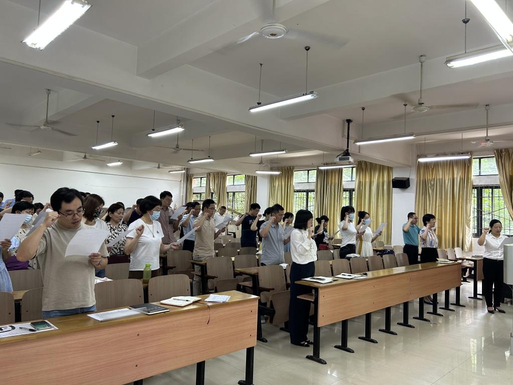 6月30日上午,环境工程学院召集院全体教职工集中师德师风学习会,学习师德师风文件、集体宣誓和警示教育案例。师德师风学习会由院长潘飞主持,党委书记谢晓萍领学,副院长蔡亚君副教授领誓。