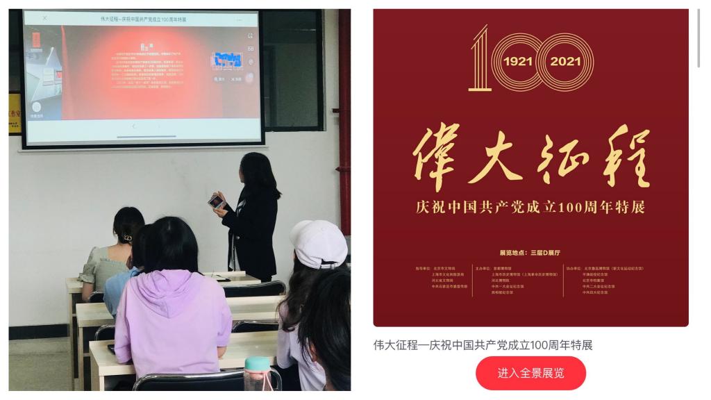 随后,支部书记姚瑶对党史学习的意义及重要性进行了解读,并带领支部党员观看首都博物馆举办的建党100周年特展 “云展览”,线上参观了 “东方破晓”“开天辟地”“星火燎原”“中流砥柱”“夺取胜利”五个展厅,重温了波澜壮阔、风云突变的历史场景,让同学们对于党的伟大征程有了深刻、全面的认知,强化了同学们学习党史的意识。
