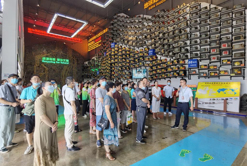 7月6日,学院党委把主题党日活动开进了 “城市矿山”——武汉格林美城市矿山低碳产业园,本次活动的主题为“践行绿色低碳发展,携手共建美丽中国”,学院党委书记谢晓萍、院长潘飞、副书记姚瑶、学生党支部书记、学生党员和洪山区玫瑰湾社区党员40余人一同参观了园区循环站、绿色理想站、绿色乐园站、变废为宝站、报废汽车处理站、电子废弃物处理站、动力电池再制造站、碳中和站等,听园区专家讲电子废弃物的循环利用过程和“双碳”理念在生产中的应用,体验了一次沉浸式学习。