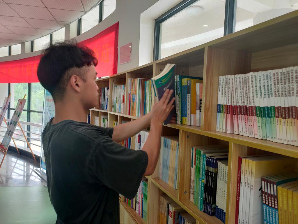 活动现场,有的认真清点捐赠的书本、有的踮脚整理书架上的书籍、有的弯腰清扫地上的灰尘,而毕业生夏雨薇则郑重地在捐出的每一本书上写下“中国有梦,青春无悔”的勉励语,短短一上午,书吧新增了600余册书籍,把书柜塞得满满当当。即将赴上海交通大学深造的学生党员曹曦动情的说,“我们见证了书吧从无到有,从零星几本书到如今五千余本的变化,两年多来,在我们的管理下,没有遗失过一本书籍,这里也成了我最爱去的‘第二课堂',离开实在不舍”。