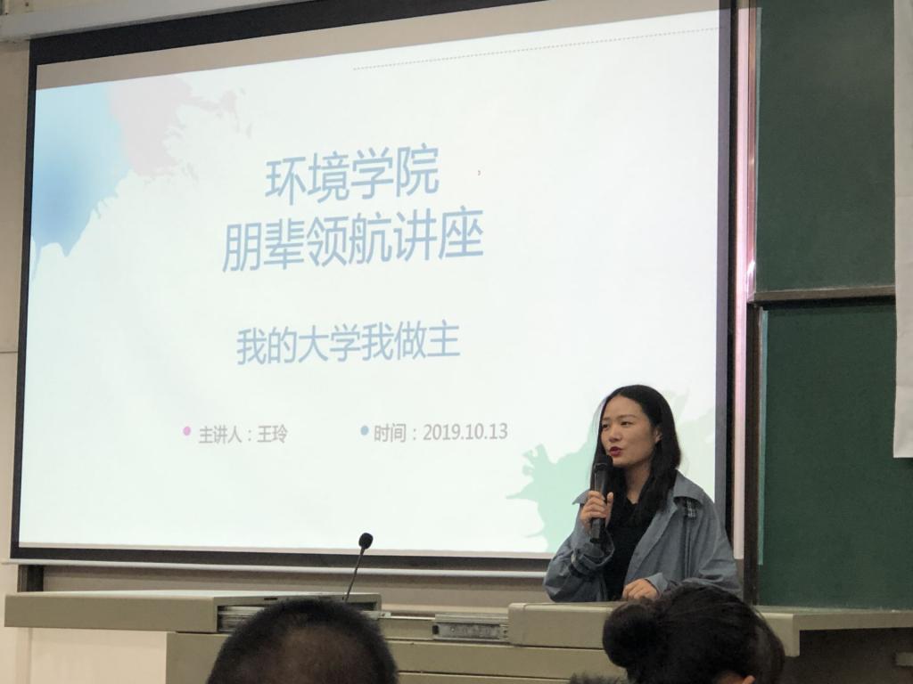 讲座最后,王玲学姐祝愿环境学院全体大一新生能在大学完成自己的目标,实现自己的梦想,并且有一个充实愉快的大学生活!