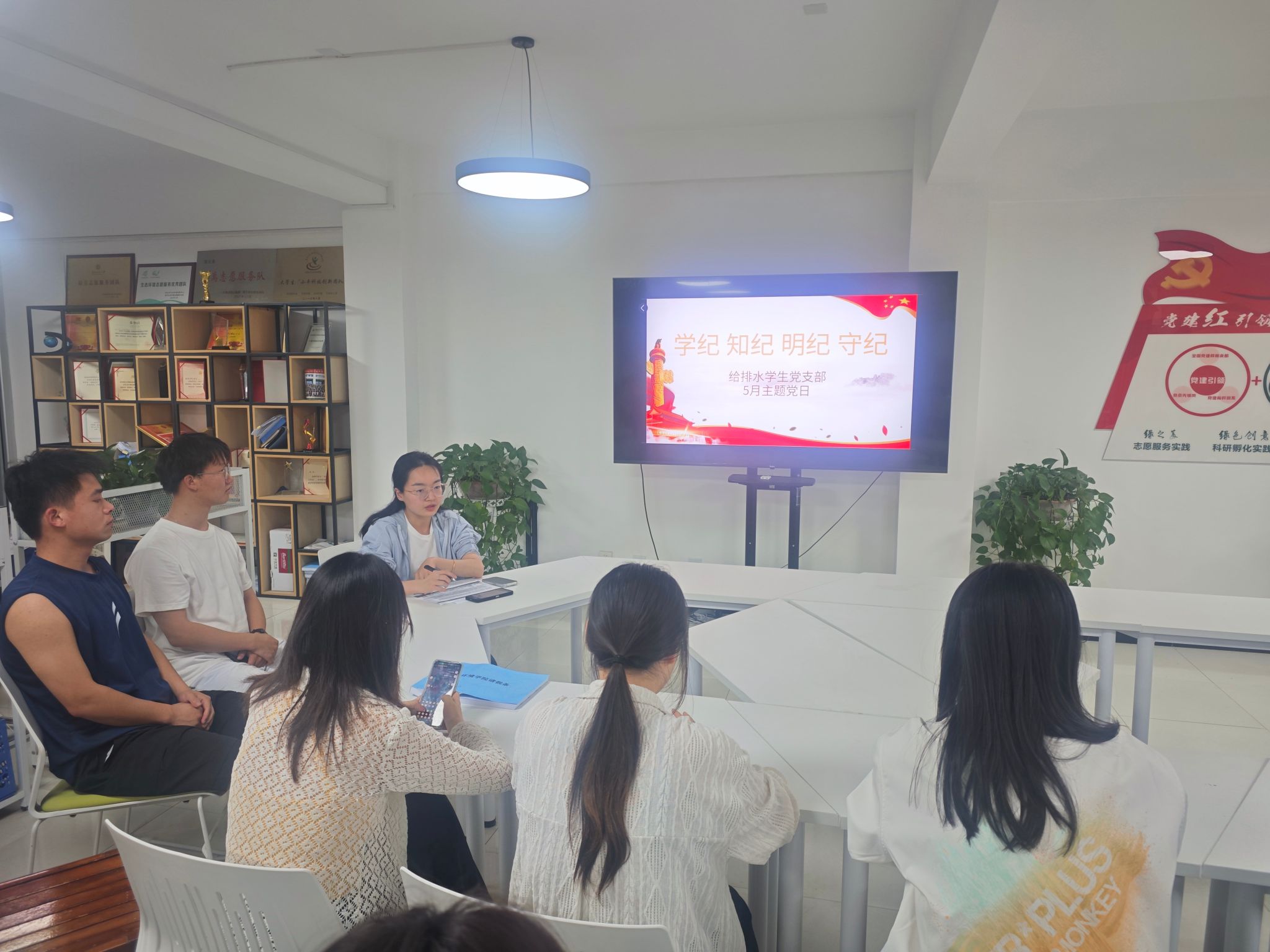 “政治纪律在哪?组织纪律如何落实在学习、工作、生活中?……”“学纪、知纪才能守好纪。”给排水学生支部书记石伊可带领支部党员学习《中国共产党纪律处分条例》《中国共产党党员网络行为规定》,逐条学习,规范自身行为。