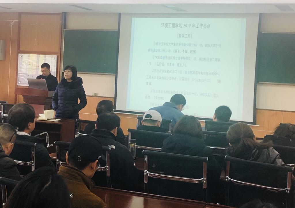 2019年12月26日,环境学院教职工大会暨工会会员大会在崇礼楼3楼报告厅举行,学院领导班子及全院教职工盘点2019年学院各项工作开展情况,谋划2020年发展。
