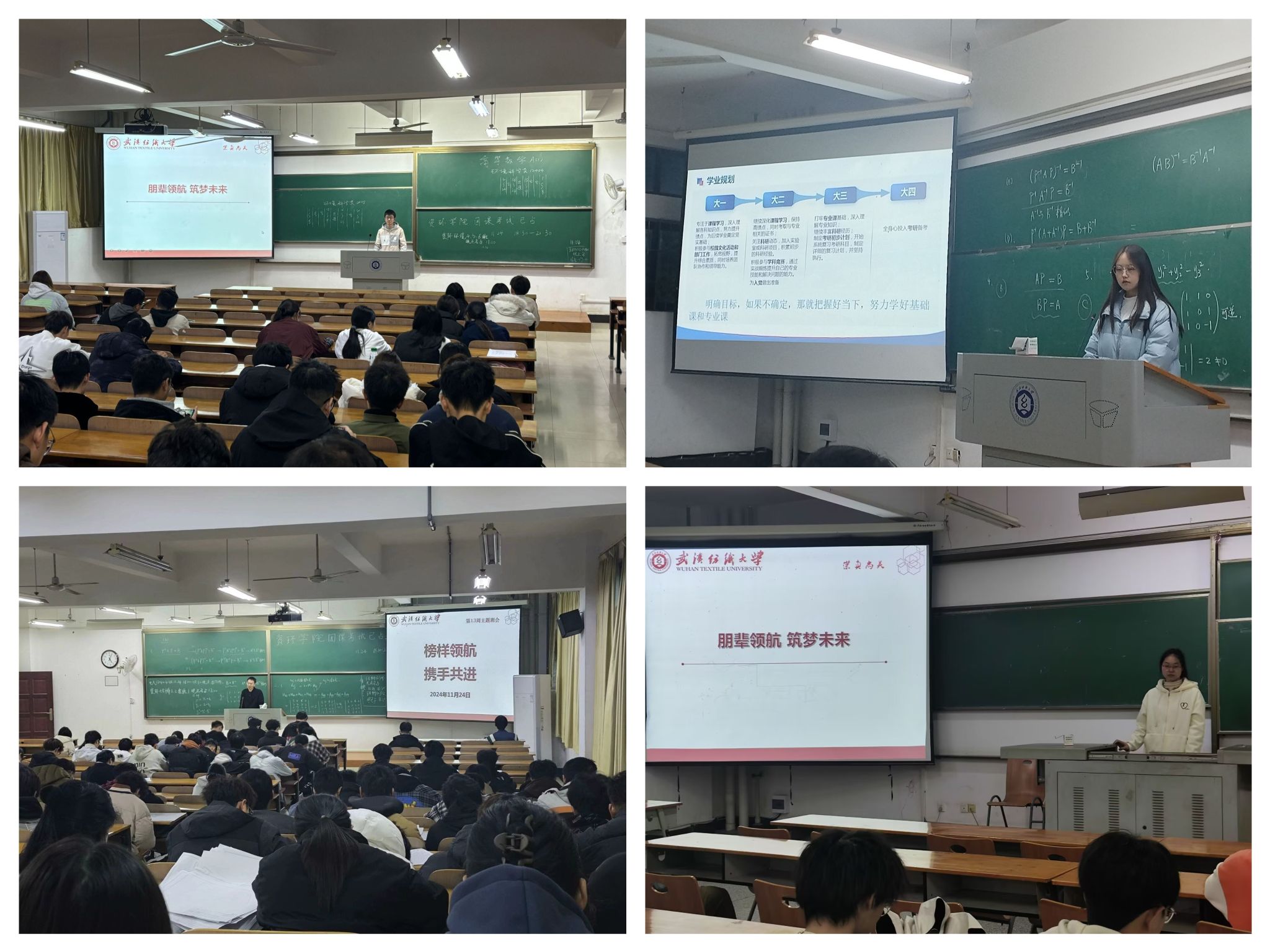 11月24日,学院开展“榜样领航,携手共进”主题教育班会,五位国家奖学金获得者和56位校一、二等奖学金获得者深入各年级、各班级,分享自己的学习方法、成长经验,用实际行动为我们诠释了优秀、责任、未来,激励同学们为梦想努力奋斗,继续前行,追求卓越。