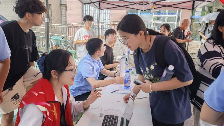 迎新系统“提速”,报到更高效。数字化迎新服务让新生线上完成大部分报到流程,现场仅需核验关键信息,在10栋学生社区,师生志愿者,一边关切询问报到进度,一边贴心提醒报到注意事项,确保入学环节无缝衔接。