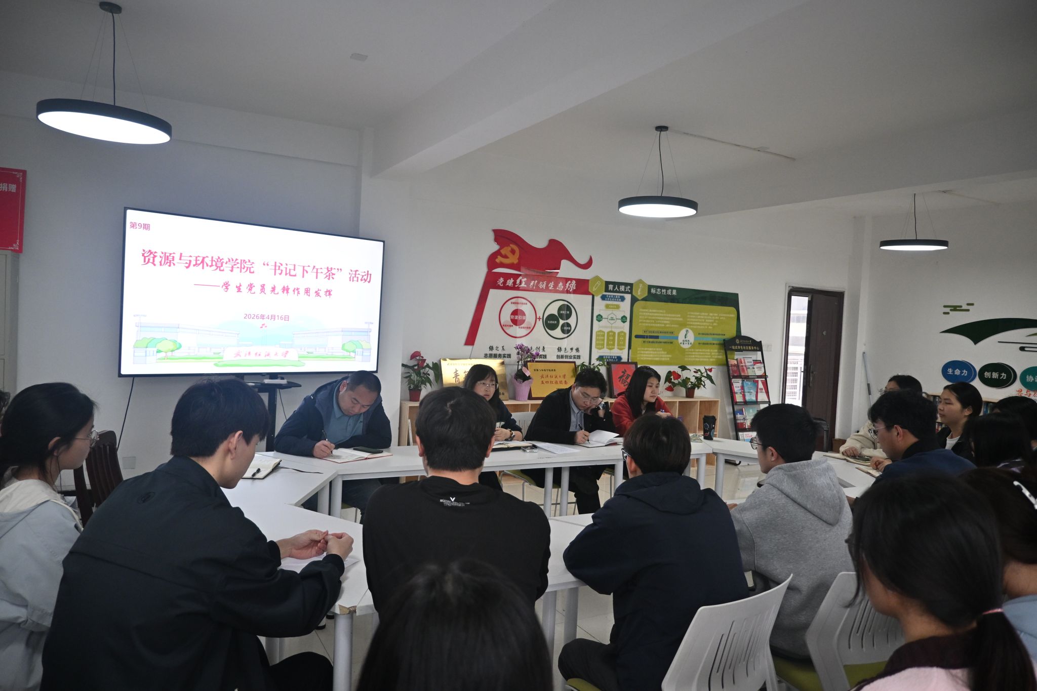 4月16日下午,太阳成tyc9728集团第9期“书记下午茶”活动在10栋学生社区举行。学院党委副书记姚瑶、团委书记毛成兴、学生党支部书记与各支部党员代表齐聚一堂,结合树立和践行正确的政绩观学习教育,面对面交流研讨,共商学生党支部建设与党员先锋作用发挥路径。