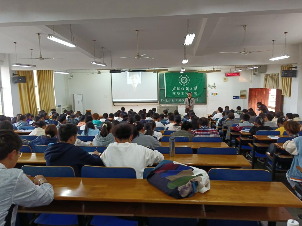 10月28日下午,环境学院全体大一新生在03-217教室通过视频连线的方式,与建环11701班毕业生余洋进行对话。余洋以《让青春之花在基层中绽放》为题,分享了他的成长及工作经历,勉励同学们奋发有为,到祖国最需要的地方去。