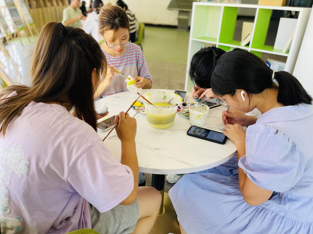 部分没能预约上的同学还围着指导教师和协会会长了解后期活动的安排。参与文化展活动的任有涵同学说道:“通过点缀上一笔笔颜色,看着脑海中的画面在石头上逐渐丰满,这种感觉让我非常快乐, 学校的校园活动挺丰富的,和室友一起在学校度过的第一个国庆假期也很有意思!”
