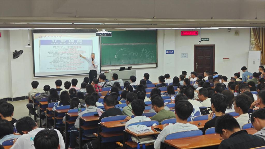夏向阳从了防盗、防骗、防火的重要性、安全隐患案例解析、安全知识等方面进行了详细介绍。夏向阳重点对年高校发生的安全实际案例进行了解析和反思,引导同学们注意卫生防疫、预防溺水、交通安全、消防安全、食品安全、防电信诈骗等内容,强调“生命重于泰山,安全高于一切”。