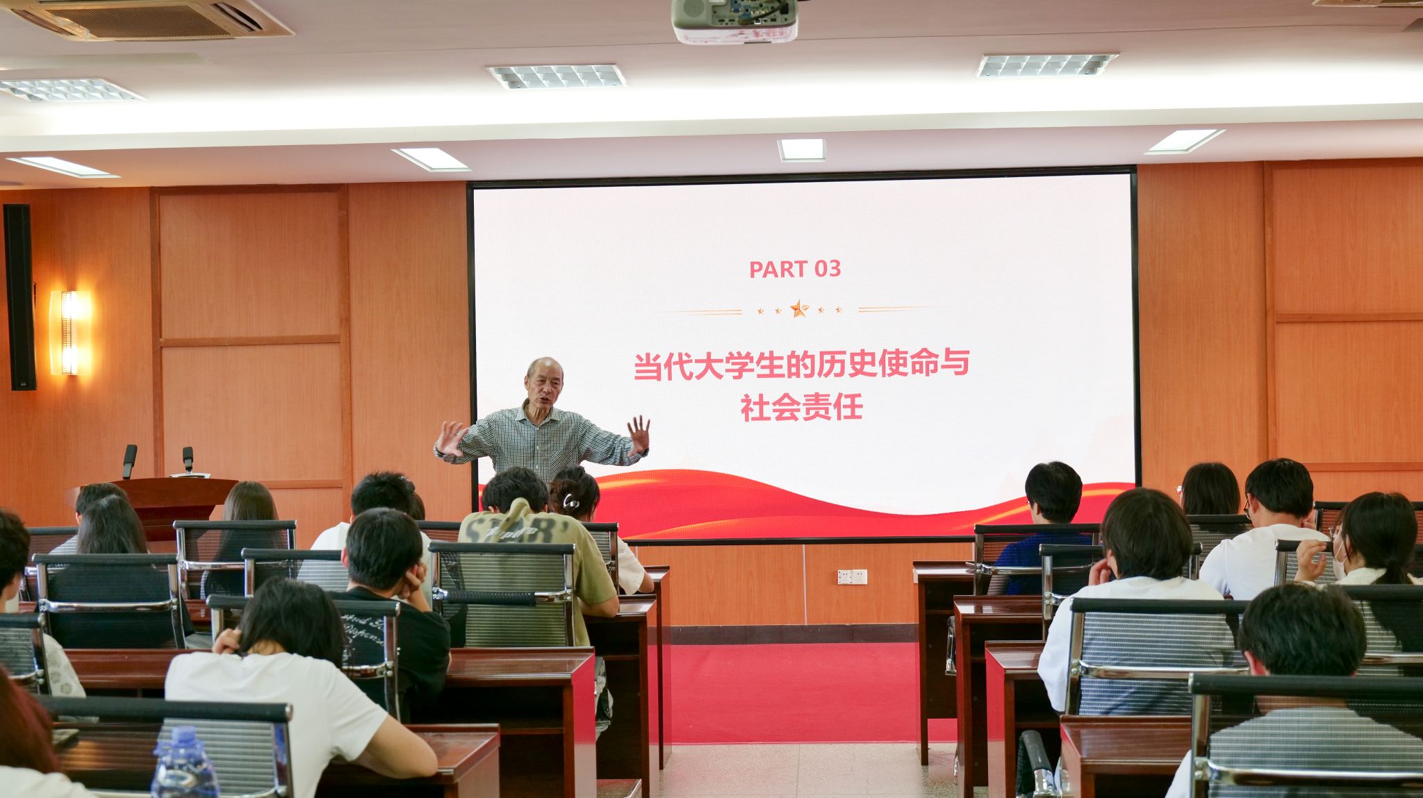 为积极响应省教育厅关工委、学校关工委相关工作指导精神,充分挖掘身边“五老”资源,充分发挥“五老”亲历者、见证者、实践者的优势,讲好党的故事、讲好中国故事,讲好专业故事,5月23日下午,学院邀请首任院长丁忠浩教授在崇礼楼310报告厅为全院师生带来了一场深刻而富有启发性的讲座。引导广大青年学生赓续红色血脉,弘扬党的优良传统,勇担时代使命。学院党委书记谢晓萍、副书记姚瑶、辅导员、各年级学生参加活动。