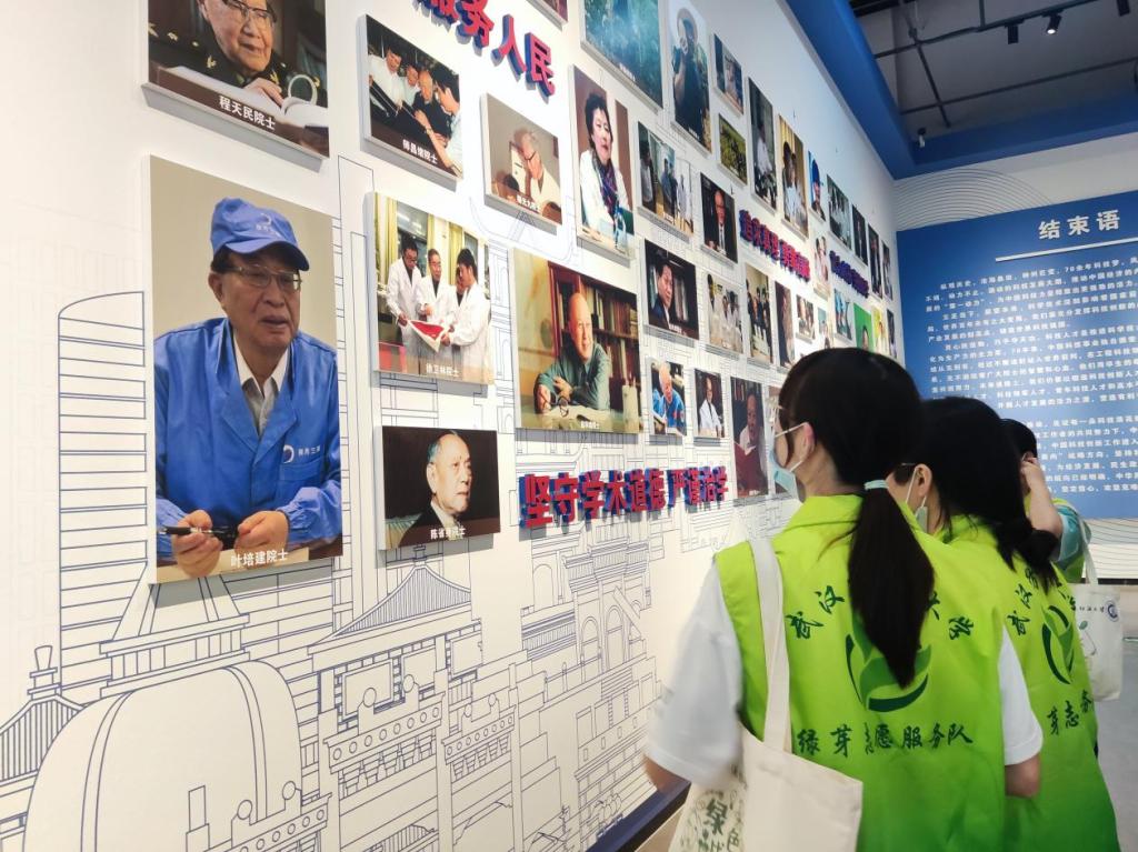 实践团队重点参观了“众心向党,自立自强——党领导下的科学家”主题展,在这里,团队成员目睹了中国航天火箭、C919大飞机模型以及太阳集团网tyc9728校长徐卫林院士的实验团队设计的“月面国旗”等高新技术成果。并通过历史照片、信件手稿复印件等展示感悟党的百年奋斗征程中科学家精神。
