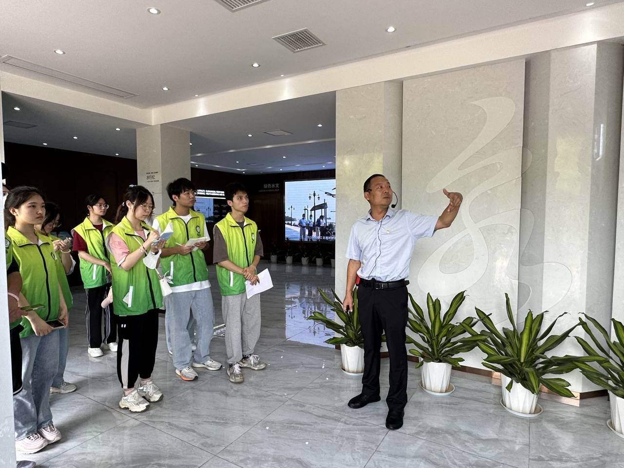 在长江流域主要水文控制站展示图前,成员们学习长江流域的基础知识、水文常识并进行趣味抢答;在智慧水文展厅,团队成员体验了水文测量互动多媒体展示;在社会水文展厅,学习水情报汛的基本流程并观看《水文观测》科普视频。