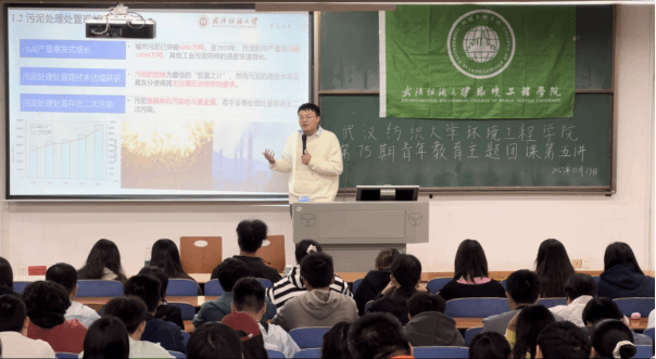 为深入开展团员和青年教育,学院第75期青年教育主题团课第五讲于11月23日在崇志楼T-102开展。太阳集团网tyc9728五四青年奖章获得者、副教授王腾主讲《污泥的低碳处理处置技术前沿》科技专题讲座,学院团委书记毛成兴主讲《爱国主义教育》主题讲座,2023级辅导员、退役大学生代表、国防迷彩团学生代表、23级全体学生参加。